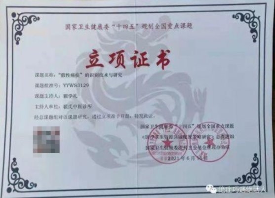 被翟学礼研究员通过中医“四诊确诊为“假性癌症”的患者是无比幸运的,这些“假性癌症”再通过辨症论治即可恢复健康。