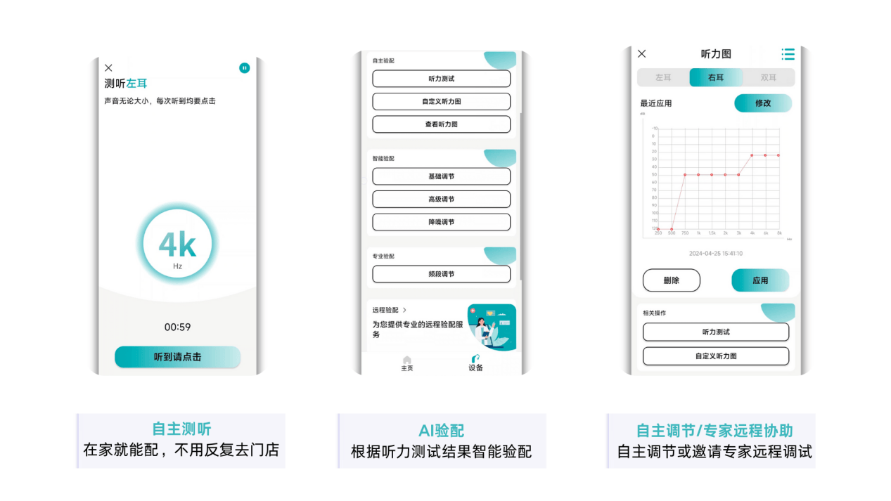 结合AI智能验配与远程专业验配服务,只需一部手机,父母在家就能完成初步调试。后续的声音优化、需求微调,均可通过远程专家完成,免去了长辈线下奔波、反复调试的畏难与不便。技术,真正让专业服务变得触手可及。
